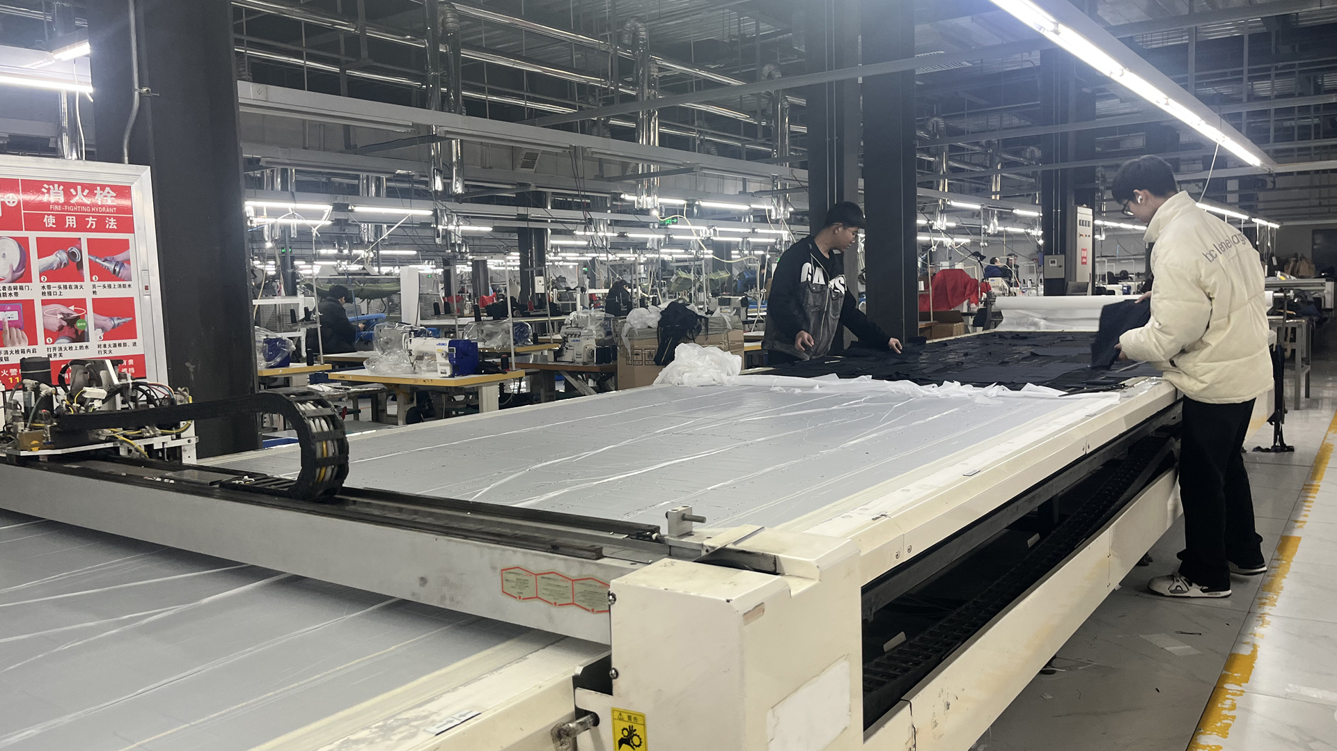 開放式工廠 行政辦公樓 形象展示店 展廳一角 樣衣展示 自動(dòng)化裁剪 車間精細(xì)生產(chǎn) 流水線成品庫(kù)